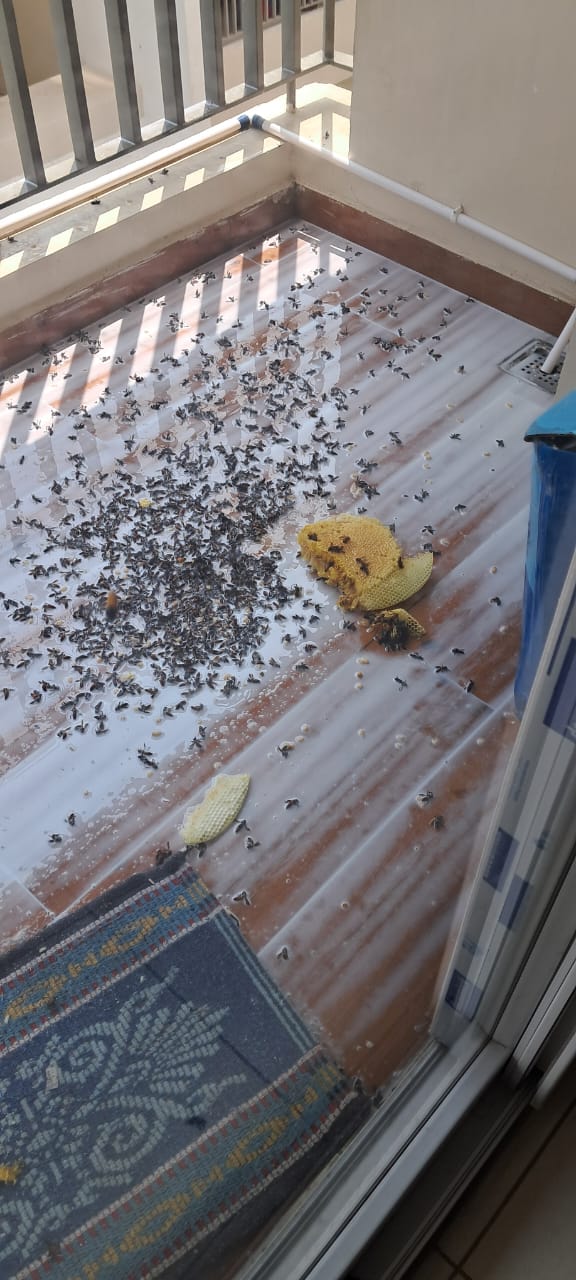 Our team safely removes active or abandoned honeycombs from balconies, roofs, walls, and trees, followed by sanitization to prevent bees from returning.